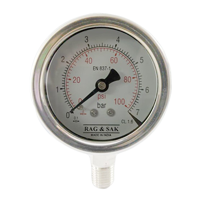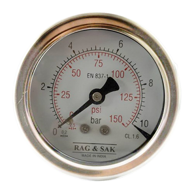 63mm Dial;Range:0 to 10 Bar;RAG & SAK - Stainless Steel Case Brass Connection Pressure Gauge; Back Mount