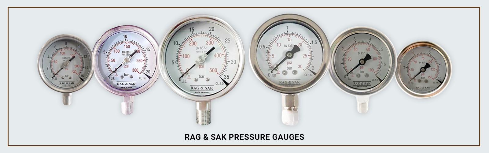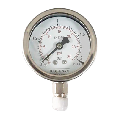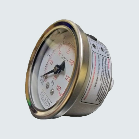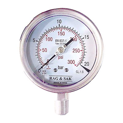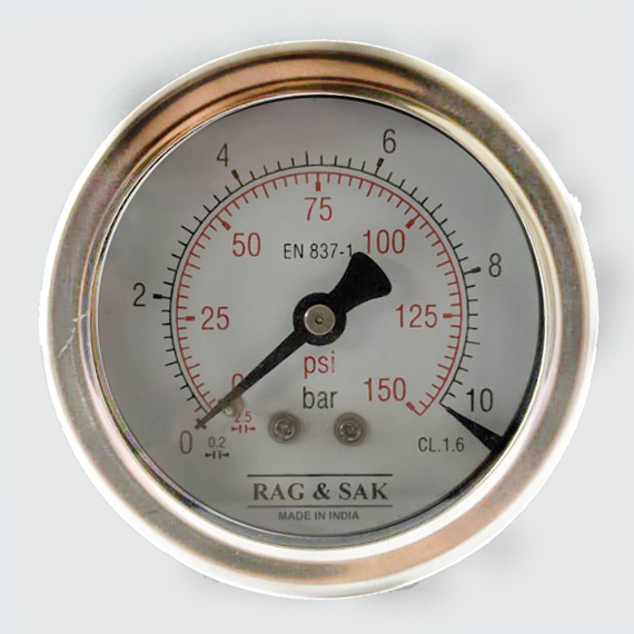 63mm Dial;Range:0 to 10 Bar;RAG & SAK - Stainless Steel Case Brass Connection Pressure Gauge; Back Mount